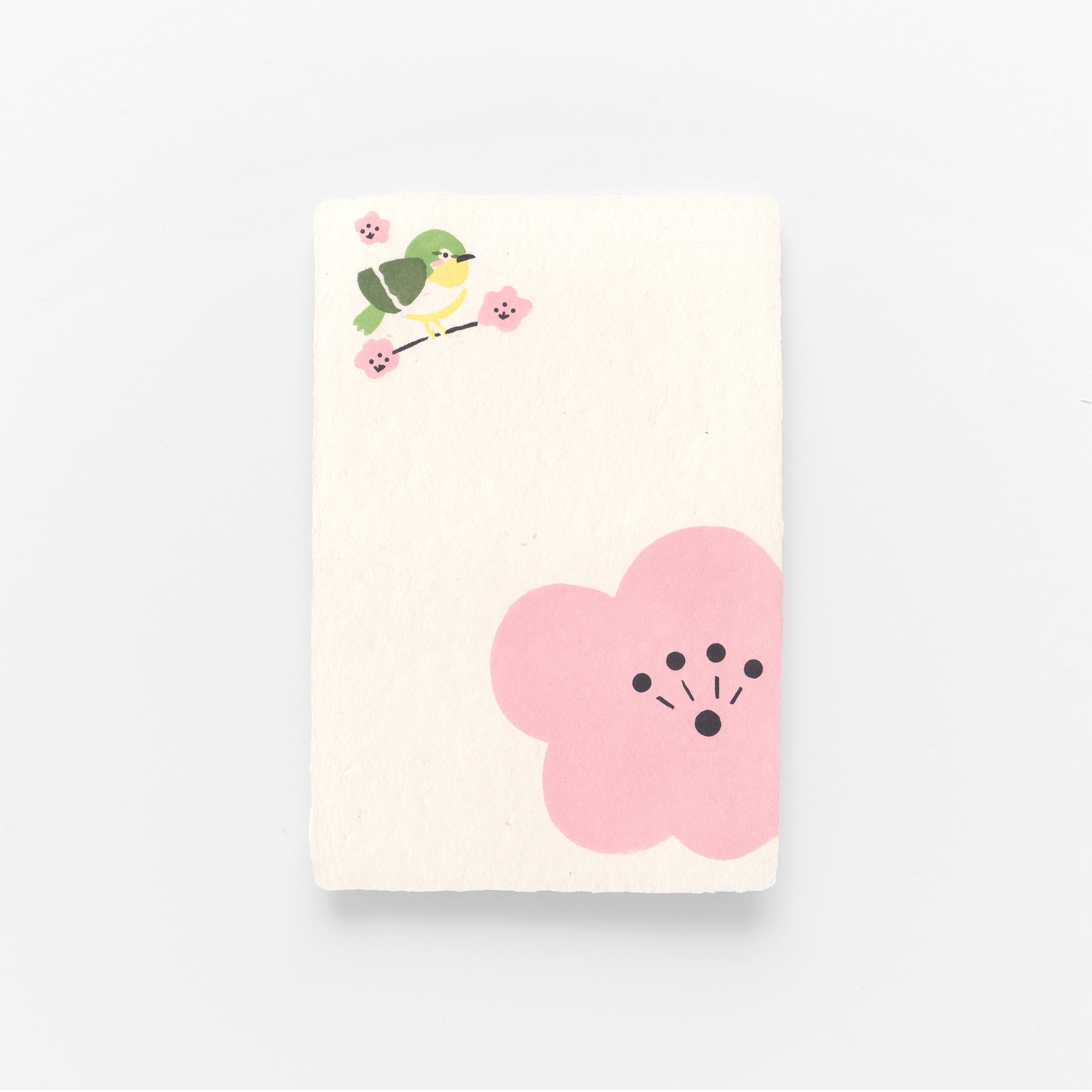 商品名:手摺り型染め葉書 梅にメジロ